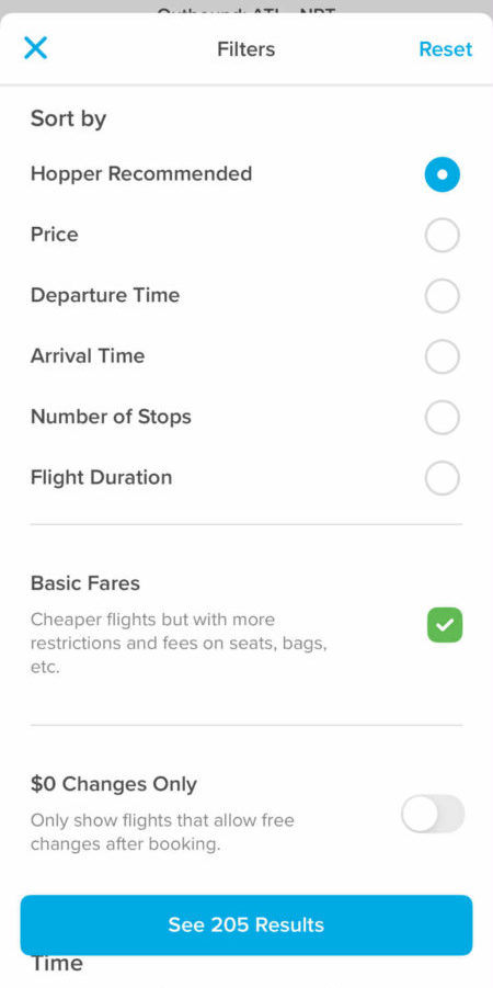 おそらく、私たちは、安かろう、よりも、ある程度飛行時間が短かったり、大手だったり、好きなフライトを利用したいので、下のView Flight(フライトを見る)をタップします。