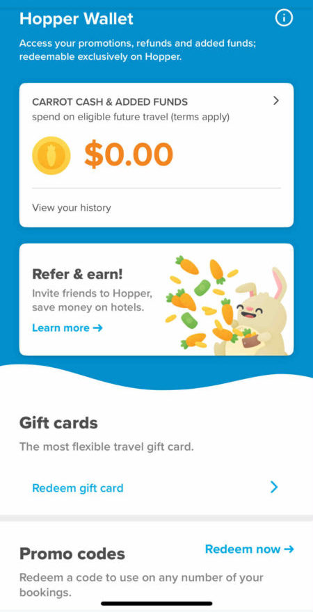 • Hopper WalletにCarrot Cashが貯まっている場合、予約時に自動的に適用されることが多いです。