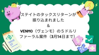 ♦ワタクシゴト ステイトのタックスリターンが振り込まれました&Venmo(ヴェンモ)の5ドルリファーラル案件